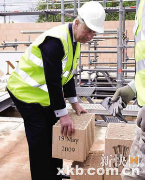 開始的時候,王儲興致勃勃,他拒絕了現(xiàn)場施工經(jīng)理提供的防護(hù)手套。戴上安全帽、穿好防護(hù)馬甲后,查爾斯開始搬運(yùn)蜂窩狀磚塊,修建圍墻。