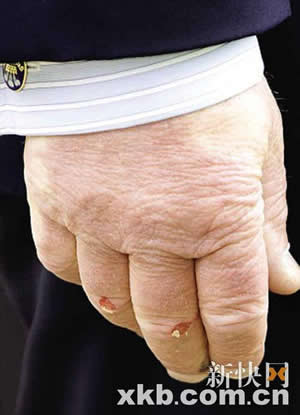 查爾斯手指被磨破。圖片來源(新快報)