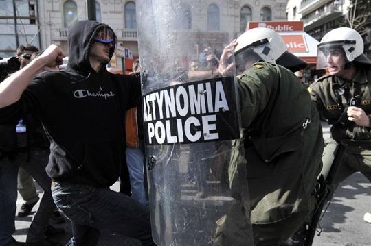 中新網(wǎng)2月25日電 據(jù)香港《大公報(bào)》報(bào)道,希臘警方星期三(24日)在雅典市中心向示威者發(fā)射催淚氣并與示威者發(fā)生沖突。這場釀成暴力的示威,旨在抗議政府為了挽救債務(wù)危機(jī)而采取的緊縮措施。