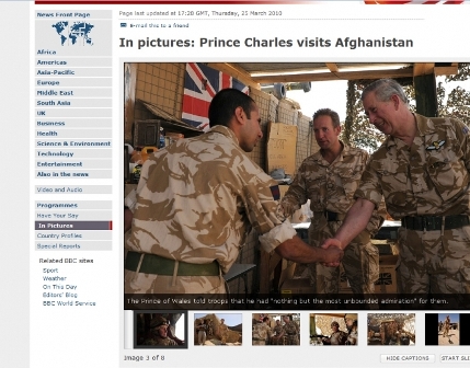據報道,查爾斯25日直入塔利班活動較為頻繁的阿富汗南部赫爾曼德省,慰問駐扎在當地的英軍士兵。這是阿富汗戰爭以來查爾斯首次慰問駐阿前線官兵。