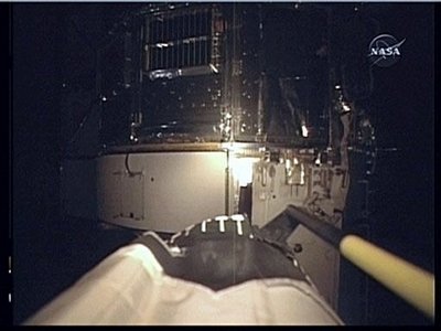這次“捕捉”行動的主要過程是,航天飛機上的宇航員利用航天飛機的機械臂抓住公共汽車大小的哈勃太空望遠鏡,再將望遠鏡置于航天飛機的特殊裝置上進行維修。“捕捉”任務成功后,宇航員立即與美國太空總署匯報。