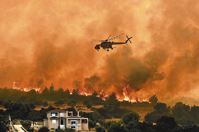 希臘每年夏天的氣溫都偏高,由于干旱或縱火,當地經常發生火患。這是自2007年希臘本土發生大火以來最嚴重的火災。當年的大火造成70人死亡。