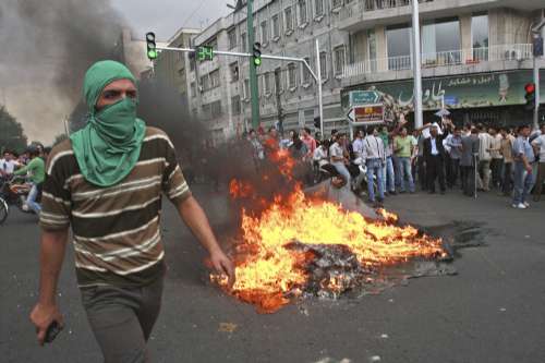 在十三日爆發的騷亂中,揮舞警棍的防暴警察與示威者爆發沖突,群眾高呼“處死獨裁者”,向警員扔擲石塊,又放火焚燒警車和垃圾桶。大批警員駐守在內政部周圍,一幢銀行建筑物嚴重焚毀,通往德黑蘭大學學生宿舍的道路被封鎖。