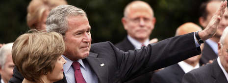 白宮雇員可以看到布什的頭發(fā)在八年后已變得“更加灰白了”。布什對白宮雇員們說:“我知道你們的感覺,但在從現(xiàn)在到那時,我們必須將注意力集中在手頭上的工作,因?yàn)槊绹嗣衿诖覀冞@樣作。當(dāng)我們進(jìn)入最后階段時,我請求你們繼續(xù)將注意力集中在目標(biāo)上。”布什在說到這句話時情緒顯得有點(diǎn)激動,他說:“愿上帝保佑你們。”他隨后將頭扭向一邊,勞拉給了他一個小小的擁抱。