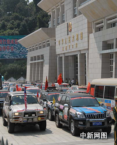 中新網10月21日廣西寧明電(王紅綱)20日中午11時,2007中國-東盟國際拉力賽車隊從中國廣西憑祥的友誼關入境,順利返回中國。廣西區人民政府副主席,本次拉力賽組委會主任劉新文等領導同志在關口迎接車隊的到來,當日中午,廣西體育局及崇左市人民政府在友誼關口為車隊舉行了簡單而隆重的凱旋迎接儀式。廣西自治區主席陸冰特意發來賀電向汽車拉力賽參賽選手和工作人員表示熱烈的祝賀和親切的慰問。