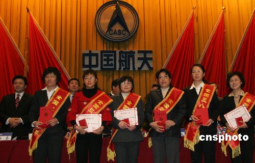 中華全國總工會決定頒發該集團一批為首次月球探測工程做出貢獻的集體和個人“全國五一勞動獎狀”、“全國五一勞動獎章”,中國運載火箭技術研究院“長征三號甲”系列運載火箭總指揮岑拯(左三)等獲得“全國五一勞動獎章”。