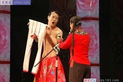 “臨時加塞兒”進來的小品名字叫《我要當明星》,節(jié)目編導(dǎo)就是趙本山。故作娘娘腔的“小沈陽”的表演異常火爆,包袱笑料一個接一個地抖出來,一會兒學(xué)劉德華,一會兒學(xué)阿杜。老趙臨時“空投”的這個小品從形式上看上去感覺有點像劇場里的熱場戲,但場上氣氛火爆。