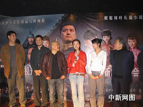 三月十四日,由西部電影集團投資的電視連續劇《關中風云》在西安舉行新聞發布會。圖為劇中的男一號李亞鵬以及導演丁黑等來到現場,氣氛熱烈。作 者:冽瑋