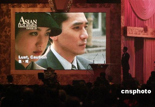 三月十七日晚,香港影視娛樂博覽開幕禮暨第二屆亞洲電影大獎?lì)C獎典禮在香港會議展覽中心舉行。梁朝偉憑借在電影《色,戒》中的出色演出,獲得最佳男主角稱號,出演韓國電影《密陽》的女演員全度妍獲得最佳女主角獎。中新社發(fā) 王麗南 攝