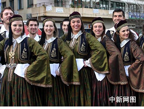 3月25日,北京2008年奧運圣火希臘傳遞第二天,慶典儀式在終點約阿尼納舉行。圖為身著希臘民族傳統服裝的舞蹈演員。中新社記者 王歡