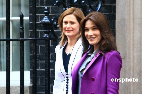 圖為英法第一夫人在唐寧街10號。中新社發 李鵬 攝