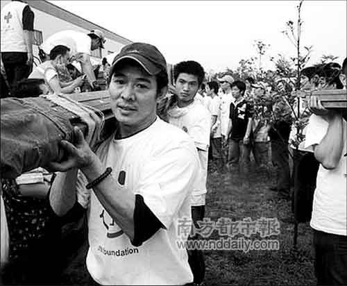 李連杰近日親赴汶川地震災區前線。除了帶去3噸多救援物資、50多萬人的捐款,以及兩支救助志愿者隊伍外,更身體力行親自上陣,搬運帳篷,參與重建。昨天上午,李連杰在成都出席“中國紅十字會李連杰壹基金5·12四川地震賑災臨時指揮部”成立發布會。據悉,臨時指揮部已構建起三個小組:統籌組、物資運輸組和外聯組。李連杰表示,“明天第三批物資要過來,近期會在江油等地建立壹基金之家,幫助130多所學校的學生復課!苯刂沟阶蛱熘形12時,壹基金已籌集善款5654.57萬元人民幣,有超過66萬人次參與捐款。不少網友感動地稱,李連杰是一個“超級英雄”。
