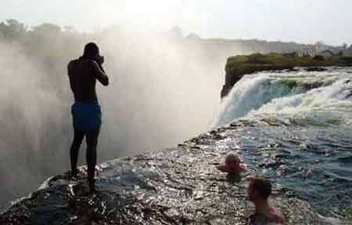 導(dǎo)游們從津巴布韋將那些膽量十足的游客護(hù)送上這個(gè)游泳池,一般每個(gè)人收取5美元的小費(fèi),而游客們一旦到達(dá)了這個(gè)“極限運(yùn)動(dòng)者天堂”,無(wú)一不被眼前的壯觀景象所折服。