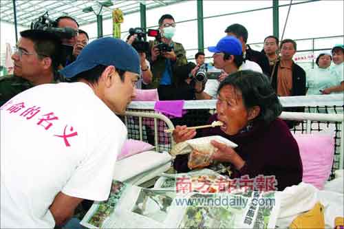 當(dāng)天,一眾藝人們到“東方汽輪”時(shí),先默哀了一分鐘,再開始探訪工作。之后一眾藝人探訪當(dāng)?shù)蒯t(yī)院時(shí),更一度引起騷亂,不論是病人還是醫(yī)護(hù)人員,看到劉德華等明星來訪都十分興奮,甚至有病人馬上跑下床要求簽名合照。而明星們都來者不拒,并且對年老病患者十分關(guān)懷,華仔及鄭秀文等更坐到一些婆婆床邊跟她們聊天。
