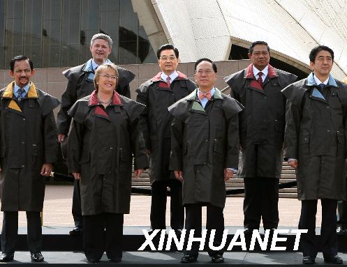 2007年9月8日,亞太經濟合作組織第十五次領導人非正式會議第一階段會議開始前,各成員領導人身著澳大利亞特色服裝在悉尼歌劇院合影。新華社記者黃敬文攝