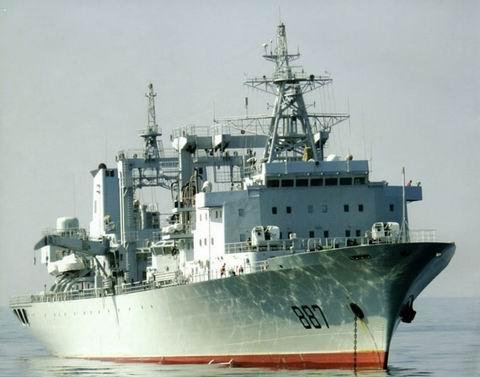 “微山湖”號綜合補給艦(舷號887)是中國自行設計建造的最大補給艦,排水量接近3萬噸,可同時為兩艘以上艦船補給,2007年曾與“廣州”艦一起出訪歐洲多個國家。