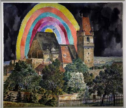 德國納粹領袖阿道夫·希特勒年輕的時候曾希望成為一名畫家。盡管畫作看起來業余得讓人不敢恭維,但因與與希特勒相關而價格不菲。日前,希特勒的13幅水彩畫在倫敦展出,英國概念藝術家、有“魔鬼搭檔”之稱的杰克·查普曼和迪諾斯·查普曼兄弟為畫作修改了背景,增加了彩虹、笑臉等。