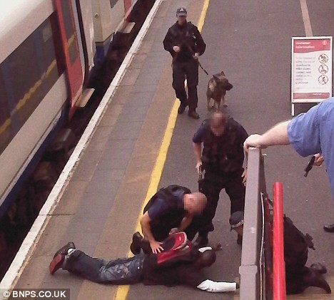 就在英國(guó)警方抓捕這名無辜男子時(shí),一名在現(xiàn)場(chǎng)的乘客使用手機(jī)拍下了有關(guān)過程。有目擊者對(duì)記者說,“當(dāng)時(shí)有很多人都在排隊(duì)買票,但突然有多名全付武裝的警察沖進(jìn)車站,他們的人數(shù)大約有10個(gè)人,有些警察拿著手槍,另外還有一條警犬。我聽見有人說:不要讓任何人走下火車或者離開站臺(tái)。隨后火車站所有的出口都被封鎖了。火車的車門打開后,那名男子剛一走下站臺(tái),就被命令趴在地上,他被要求伸開雙手并靠攏雙腿。警方對(duì)這名男子的背包進(jìn)行了認(rèn)真的搜查,然后又把他帶到一間廢棄不用的盥洗間,可能是對(duì)他進(jìn)行一步的搜查。這一幕真是讓人感到非常恐怖。”