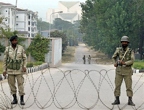 據巴基斯坦國內媒體稱,巴基斯坦已經在當地時間3日下午5時5分關閉了全部的私營和國外電視新聞頻道。巴基斯坦國營電視臺在當地時間下午6時5分首次對外界發布了關于實行緊急狀態的公告。與此同時,大批巴基斯坦陸軍士兵、突擊隊員和警察被部署到巴基斯坦國營電視臺總部、巴基斯坦廣播電臺、議會大樓、機場和一些重要的政府大樓。在穆沙拉夫宣布全國進入緊急狀態和頒布了一項臨時憲法令后,裝甲運兵車和軍用卡車開始在巴基斯坦首都伊斯蘭堡街頭進行巡邏,首都主要主要道路上也已經設置了路障。