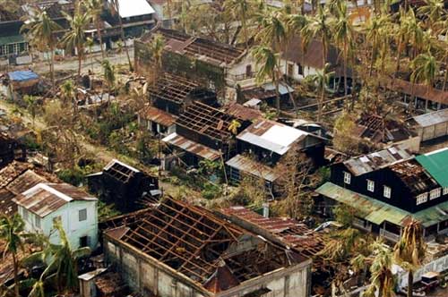 熱帶風暴“納爾吉斯”3日早些時候以每小時192公里的時速襲擊了緬甸,緬甸政府目前已經宣布仰光、伊洛瓦底省、勃固省、孟邦和克倫邦為重災區。風暴引發了大規模的潮浪,潮浪襲擊了內陸地區。緬甸社會福利與救濟安置部長在仰光舉行的一個新聞發布會上稱:“潮浪比風暴本身造成更多的人員喪生情況。潮浪的高度達3.5米,它卷走和吞沒了低海拔地區一半的房子。居民們沒有任何逃生的可能。”