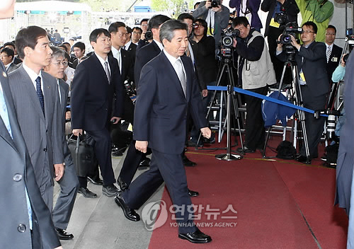中新網4月30日電 據韓聯社報道,韓國前總統盧武鉉30日下午以嫌疑人身份現身首爾瑞草洞的大檢察廳,接受中央調查部的調查。