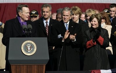 據(jù)“中央社”報道,布什與親近家人及高層官員,參加核子動力航空母艦“布什號”(USS George H.W. Bush)下水服役儀式。總統(tǒng)當選人奧巴馬1月20日進入白宮時,布什將卸下總統(tǒng)職務。