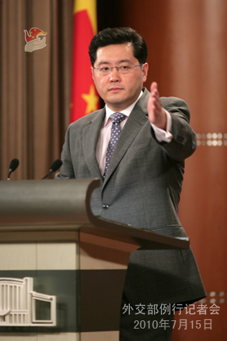 中新網7月15日電 外交部發言人秦剛15日表示,中方堅決反對任何外國軍用艦機在黃海以及其它中國近海從事影響中國安全利益的活動,希望有關各方保持冷靜和克制,不做加劇地區局勢緊張的事情。