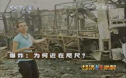 記者:我所在的地方離爆炸中心不遠,居民告訴我,塑料廠就是冒白煙的位置。但是可以看到,在我身后有一輛長長的大貨車,現在已經被燒到只剩下地盤,骨架,面目全非。現場不時還有濃煙冒出,這些煙里有一股比較嗆人的塑料燒焦以后的味道。現場還能看到燃起的火苗,現在遠處還能看到床單還是衣物掛在樹上,證明這個地區是有人居住的。在我身后,有一排鋼架,現在被炸的不成形。當地居民告訴我原來這里是一家物流配送中心,剛才的大貨車也是來配貨的,所幸的是這個貨車司機發生爆炸時并沒有在車里并沒有傷亡。現在爆炸現場不斷有越來越濃的黑煙冒出,能夠看到明顯的火苗。