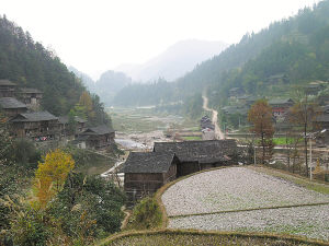 這個村幾乎所有人都還住著木頭吊腳樓。他們從山上砍取杉木,涂上桐油,搭建起這種傳統房屋。即使到2005年,村里還有6戶人家屋頂蓋的不是瓦片,而是長滿青苔的杉樹皮。這些因風吹雨打而變成黑色的吊腳樓里,總共只有60臺彩電,16部電話,20部手機,5臺洗衣機。