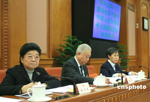 十屆全國人大常委會三十一次會議表決通過了,個人所得稅起征點自2008年3月1日起由1600元提高到2000元。中新社發(fā) 廖文靜 攝