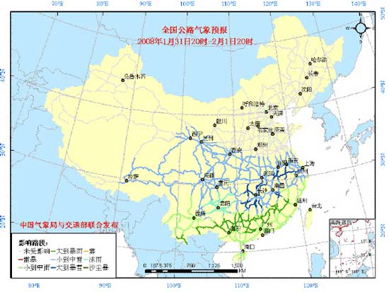 全國(guó)公路氣象預(yù)報(bào)(2008年1月31日20時(shí)-2月1日20時(shí))