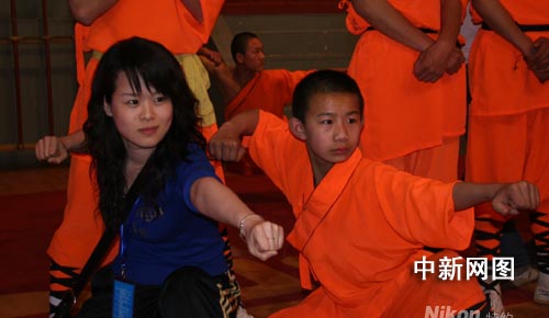 圖:"網(wǎng)上看河南"采風(fēng)團女記者與習(xí)武者"爭鋒"