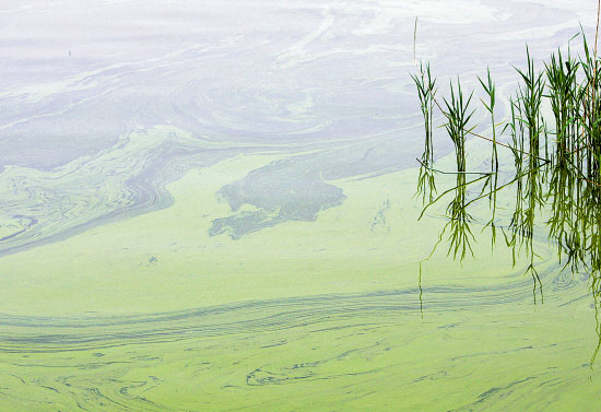 雖然經(jīng)過多日雨水的稀釋,但前日陽光下,湖州南太湖邊的水面上,一層綠膜仍泛著油光。“這些就是藍(lán)藻。”一位漁民告訴記者。