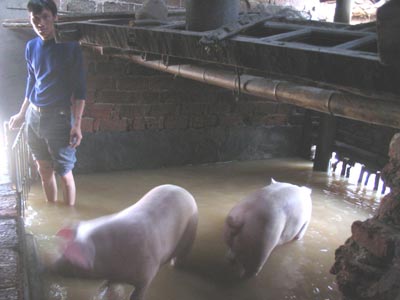 柳元松還顯得有些感激地對記者說,當日凌晨3時,他的養豬場的積水就達到了1.5米深,導致這批快要上市的“出欄豬”有的在豬舍中嗷嗷叫,有的被水沖出了豬舍。面對這一緊急情況,他的10多位會水的男姓鄰居不顧自家被洪水浸泡,紛紛從各自的家中跑出來,游到豬舍中或洪水中去營救將要淹死的生豬。尤其讓他感動的是,因鄰居家的一樓都被洪水浸泡,有幾位男姓鄰居還將從洪水救起的生豬直推趕到自家的二樓,以防被淹生豬再次受寒。