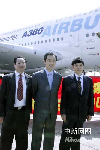 中國駐法國大使孔泉(中)等到機場送行