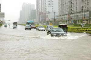 在河源市區,車輛在水浸路段“強行”沖關。 曾煥陽、謝全建 攝