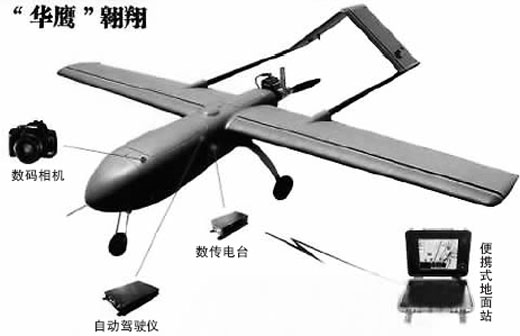 這款名為“華鷹”的無人機(jī)數(shù)次出現(xiàn)在青川、北川,對抗震救災(zāi)發(fā)揮了積極的作用。據(jù)四川省測繪局的專家介紹,“華鷹”是四川省測繪局專程向國家測繪局申請派來支援災(zāi)區(qū)的!叭A鷹”無人機(jī)航攝系統(tǒng)通過了國家測繪局鑒定,飛機(jī)系統(tǒng)采用GPS導(dǎo)航自主飛行,裝備專業(yè)數(shù)碼相機(jī),可在半徑15千米的范圍內(nèi)穩(wěn)定可靠飛行3小時(shí),自動(dòng)拍攝地面高分辨率航空影像,生成高清晰地面影像。