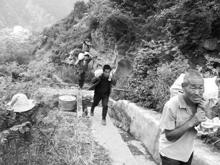 組織村民搬運沙袋。