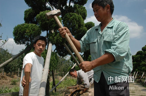 9月12日,園林工人在浙江臺州一苗圃加固花木,以應對臺風“森拉克”的到來。作 者:陳林聰