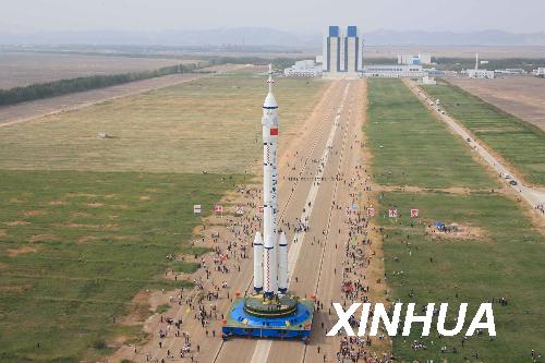 20日15時15分,當(dāng)神舟七號載人飛船、長征二號F運載火箭和逃逸塔組合體,經(jīng)過一小時零五分的行駛,順利垂直轉(zhuǎn)運至1500米之外的發(fā)射區(qū)時,現(xiàn)場人群中爆發(fā)出一陣歡呼。這標(biāo)志著神七任務(wù)已經(jīng)進入最后的發(fā)射準(zhǔn)備階段。