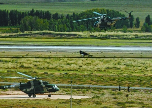 昨日,直升機起飛參加“神七”主著陸場搜救演習(xí)。 郭超 攝