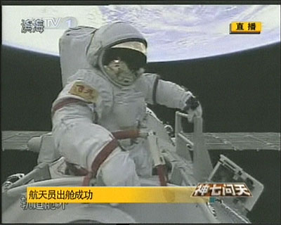 中新網(wǎng)9月27日電 中國(guó)“神七”載人飛船航天員翟志剛今天下午16時(shí)43分左右順利出艙,實(shí)施中國(guó)首次空間出艙活動(dòng)。他出艙后向地面報(bào)告:“神舟七號(hào)已出艙,身體感覺(jué)良好,向全國(guó)人民,向全世界人民問(wèn)候。”