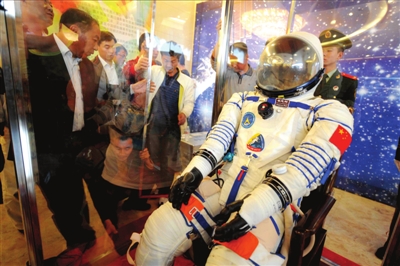 據(jù)了解,這套航天服是我國完全自主產(chǎn)權(quán),價(jià)值約100萬元,身高160厘米至175厘米的人都可以穿上。(記者王晴)