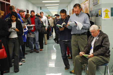 等到孩子們真正長大可以投票的時候,他們在熱情高漲的同時又不乏理性。在呂芳的想像中,投票站應該是兩方對壘,支持者搖旗吶喊才對。結果卻完全出乎他的預料。大選當天,呂芳所在小組參觀的第一個投票點在弗吉尼亞Falls Church縣的一個社區活動中心。他們到那里時剛過6點,投票點外已經排起了長龍,蜿蜒足有一二百米。人群中,有人帶著蹣跚學步的孩子,有人坐著輪椅,有人自己帶著椅子……“但是,整個人群靜悄悄的,沒有一點激動人心的表現。”