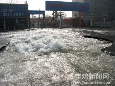 12月16日中午12點40分左右,位于陳倉大道底店段引水、輸水管道再次發生爆管。這是近一月來發生的第三次爆管,我市渭河以北地區的居民暫停用水。