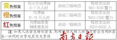 為確保2009年春運的安全,廣州警方認真總結和吸取2008年處置廣州火車站地區因旅客大量聚集造成嚴重安全危機的經驗和教訓,精心制定了2009年春運安全保衛工作系列方案。其中,針對火車站地區可能再次出現的因火車延誤或鐵路中斷造成大量旅客滯留的情況,制定了“黃、橙、紅”三個級別的應急響應方案和最高級別最大力量的調警方案。