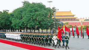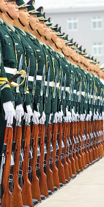 中國人民解放軍陸海空三軍儀仗隊(duì)主要擔(dān)負(fù)迎送外國元首、政府首腦、軍隊(duì)高級(jí)將領(lǐng)及紀(jì)念、慶典等重大國事活動(dòng)的儀仗司禮任務(wù)。禮儀是一個(gè)國家文化的精華,軍人執(zhí)行的國禮、軍禮更是一種精粹。三軍儀仗隊(duì)建隊(duì)以來,先后圓滿完成了外國首腦訪問,香港、澳門回歸政權(quán)交接儀式升國旗,奧運(yùn)會(huì)、殘奧會(huì)開閉幕式國旗升降、頒獎(jiǎng)等3000多次儀仗司禮任務(wù),被中央軍委授予“軍旅標(biāo)兵”榮譽(yù)稱號(hào),贏得了國內(nèi)外公眾和輿論的廣泛贊譽(yù)。朱民、劉桂利、張力攝影報(bào)道