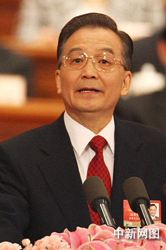3月5日上午,十一屆全國人大二次會議在北京人民大會堂開幕,國務院總理溫家寶作《政府工作報告》。中新社記者 任晨鳴 攝