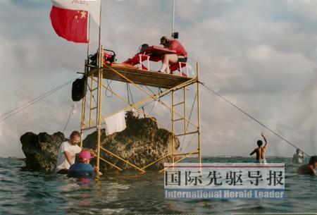 見此情景,中國隊員非常憤怒,一位隊員立即將中華人民共和國國旗插到了無線電平臺的頂端。“那就是在挑釁,黃巖島是我們的領土,看到五星紅旗高高飄揚,我們心里別提有多激動。”陳方告訴《國際先驅導報》:“我們不能忍受他們對中國主權的挑釁,這是原則問題,當時幾位年輕的隊員已經作好準備,如果菲律賓人敢將國旗插到礁石上,他們就要過去拔掉。”
