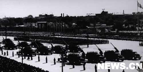 閱兵歷時(shí)五十分鐘結(jié)束,接著開(kāi)始了六十萬(wàn)人的群眾大游行。